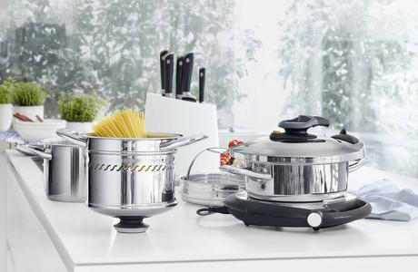 Genießen Sie mehr Zeit mit Ihrer Familie oder bei Ihrem Hobby! Beim Kochen mit AMC sparen Sie viel Zeit, Energie und Aufwand. Perfekt aufeinander abgestimmte Elemente unterstützen Sie beim Kochen und sorgen dafür, dass Ihr Essen immer gelingt. Der Akkutherm-Boden ermöglicht eine rasche Wärmeaufnahme und –verteilung, während der Sensotherm die Temperatur im Topfinnern misst. Der Visiotherm zeigt zudem jederzeit an, wie heiss es im Topfinnern ist. Mit Hilfe von Navigenio und Audiotherm können Sie nach Wunsch automatisch kochen lassen, während Sie sich entspannt zurücklehnen. Mit AMC wird das Kochen zu einem unbeschwerten Genuss!