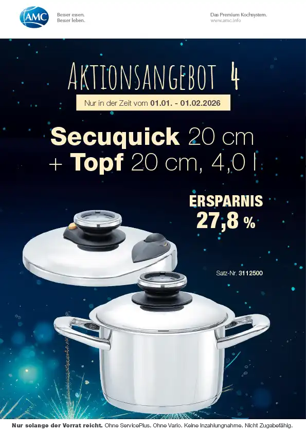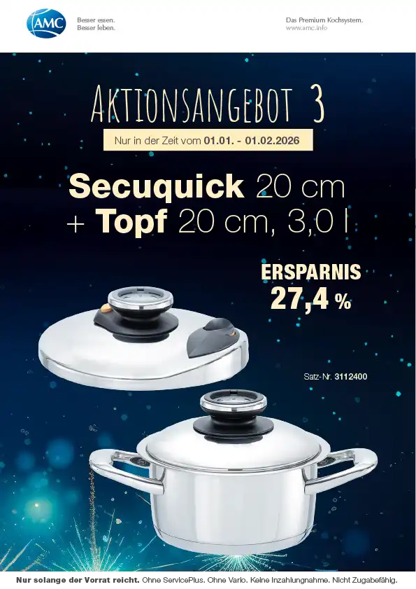 „Wir haben es zu unserer Aufgabe gemacht, getreu dem Motto: „Besser essen. Besser leben.“ hochwertige AMC Produkte vorzustellen. Das ist das Erfolgsrezept, das AMC zum Weltmarktführer für exklusive und innovative Produkte rund ums Kochen gemacht hat. So können wir heute auf über 50 Jahre Erfahrung zurückblicken und Ihnen das beste AMC Kochsystem präsentieren.